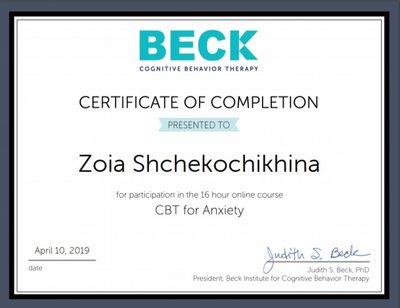 Придерживаюсь когнитивно-поведенческого подхода и методов, эффективность которых потверждена исследованиями. В нашей работе не будет «магии»: вам будет известно, что и зачем мы делаем, а также вы сможете отслеживать прогресс. Информация об образовании и опыте работы — ниже.